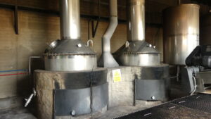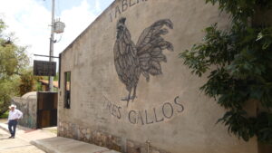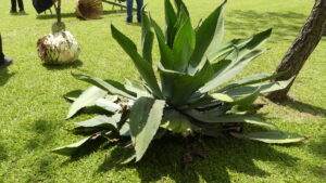 Adán Hernández es el maestro destilador de la Taberna Tres Gallos, elaborador de raicilla de la sierra. Nos cuenta que la tradición era dar la raicilla a los mineros, para que aguantaran las altas y bajas temperaturas en su labor. Predomina el agave maximiliana, de hojas anchas, la más autentica de la sierra, aunque en esta Denominación de Origen se puede utilizar 5 agaves distintos. Probamos el agave cocido y está muy dulce, sabe a calabaza asada. Las piñas las cuecen al vapor de agua durante 37 horas a 40 horas, y este pasa a un tren de molienda, con tres destrozadoras, y añadiendo agua obtienen el jugo azucarado.