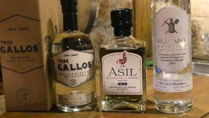 • Tres Perros Negros, en horno de tierra, machacada en canoa y destilada en alambique filipino, en olla de barro, de agave Rhodacantha (tarda 9 años en madurar, estos agaves salvajes). Sabroso y fino, muy mineral, con cuerpo y de final fresco.